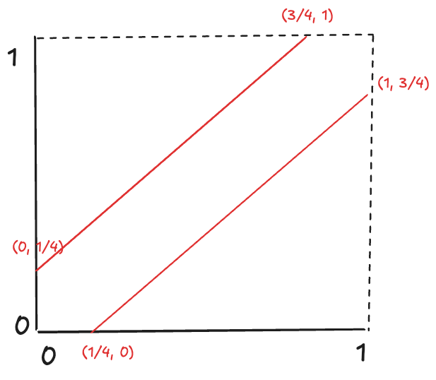 Figure 6.4 depicts the probability geometrically as the area between the red lines on the unit square.